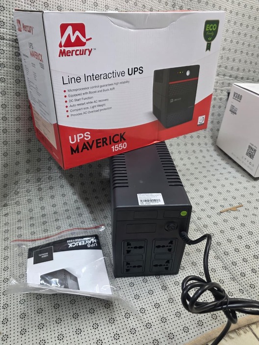 Stay powered and protected with the Mercury Maverick 1550 UPS Offline 1550VA/930W, your ideal backup solution for sensitive electronics. With 4 universal sockets and dual 8.2AH batteries, this UPS is built to support PCs, routers, CCTV, POS systems, and more in power-sensitive environments across Kenya.